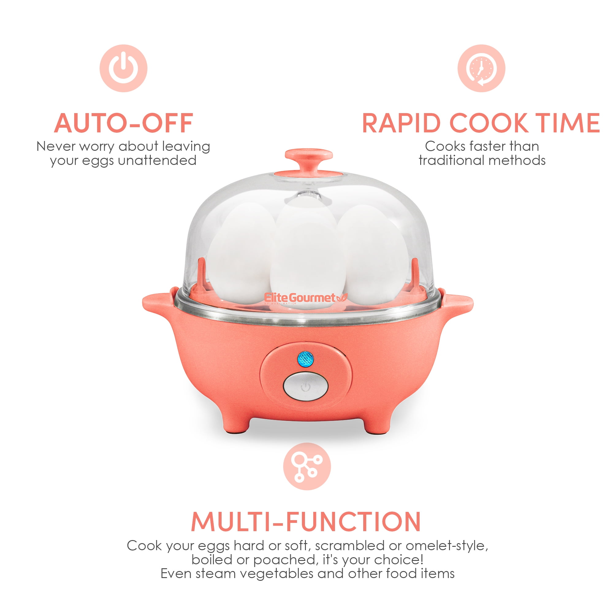 Elite Gourmet Automatic Easy Egg Cooker 7 Eggs Coral Egc007c Walmart Com